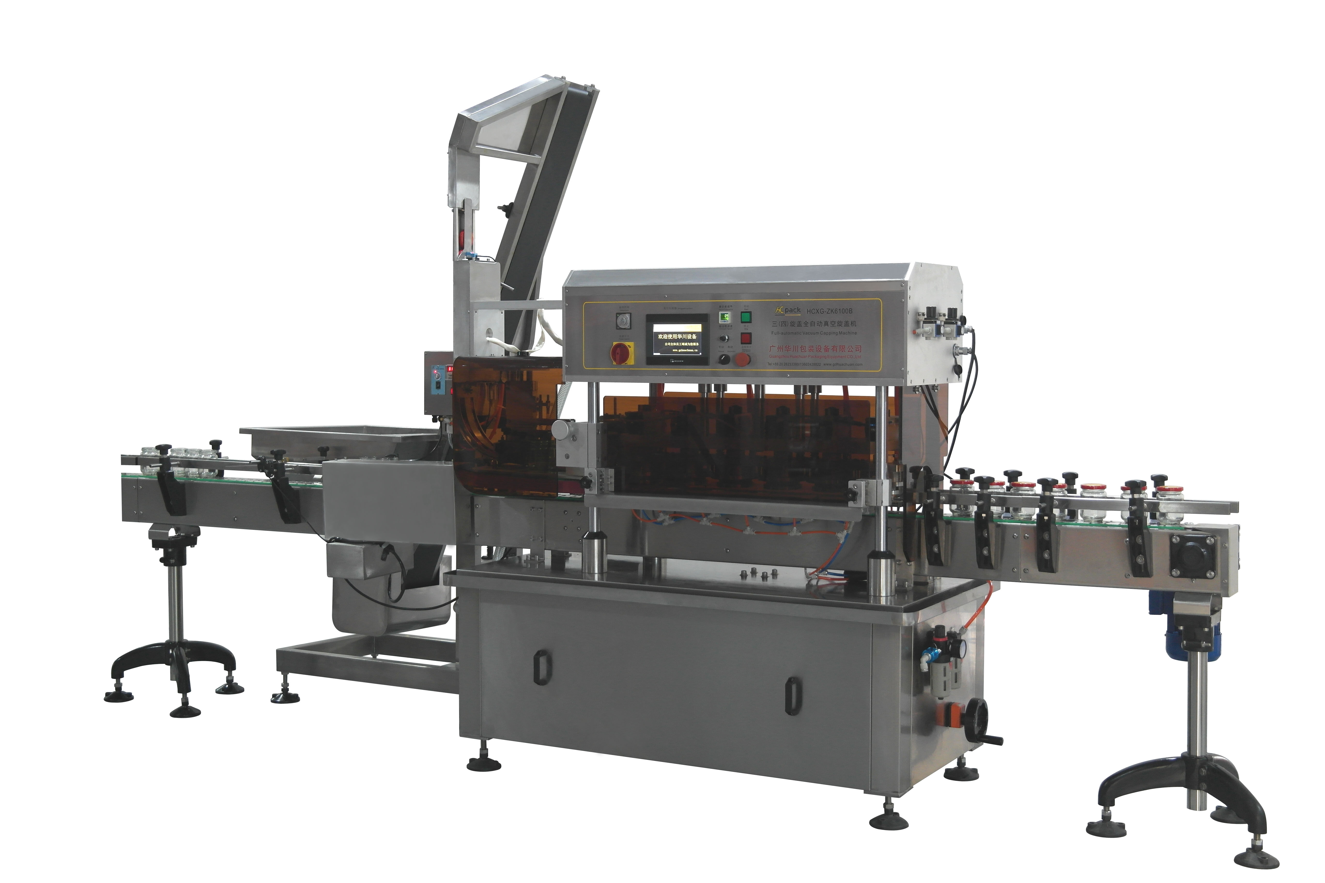 三(四)旋蓋玻璃瓶全自動(dòng)真空旋蓋機(jī)是我司集多年包裝設(shè)備研發(fā)生產(chǎn)經(jīng)驗(yàn),自行開發(fā)設(shè)計(jì)的新一代全自動(dòng)三四旋蓋玻璃瓶真空旋蓋機(jī)。廣泛適用于玻璃瓶鐵蓋的抽真空旋蓋。該機(jī)集機(jī)電、氣動(dòng)于一體,采用清潔、節(jié)能、環(huán)保的壓縮空氣為主要?jiǎng)恿?,由PLC配合人機(jī)界面(觸摸屏)控制,設(shè)計(jì)新穎,結(jié)構(gòu)緊湊,外形美觀。具有抽真空效果好,性能穩(wěn)定可靠,自動(dòng)化程度高,操作簡單,維護(hù)方便等特點(diǎn)。適用于各種行業(yè)的玻璃瓶抽真空旋蓋。是替代進(jìn)口設(shè)備的理想選擇。